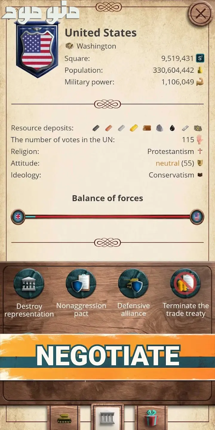بازی MA 1 – President Simulator PRO + Mod عصر مدرن 1 – شبیه سازی رئیس جمهور حرفه ای مود شده در سبک استراتژی توسط استودیو بازی سازی Oxiwyle در وبسایت منو مود به صورت رایگان برای اندروید منتشر شد .این اثر یکی از کامل ترین شبیه سازهای سیاسی و مدیریتی محسوب می شود که در آن بازیکن در مقام رئیس جمهور یک کشور مدرن قرار می گیرد و باید سرنوشت ملت خود را با تصمیماتی سرنوشت ساز هدایت کند. این نسخه پریمیوم با حذف تبلیغات، دسترسی آزاد به تمامی کشورها و سرعت بیشتر در پیشبرد روزها تجربهای روانتر و جامعتر نسبت به نسخه رایگان ارائه می دهد و به بازیکن اجازه می دهد در فضایی بدون محدودیت به مدیریت تمام جنبه های حکمرانی بپردازد.در این شبیه ساز،مجموعه وظایف رئیس جمهور از امور اقتصادی و اجتماعی گرفته تا سیاست خارجی و عملیات نظامی را شامل می شود. بازیکن نه تنها باید برای رشد و توسعه کشور خود تلاش کند، بلکه باید در برابر بحران های داخلی، تهدید های خارجی و فشار های بین المللی واکنش های هوشمندانه ای نشان دهد. همین تنوع و چند لایگی تصمیم گیری، بازی را به تجربه ای منحصر به فرد برای علاقهمندان به استراتژی و مدیریت تبدیل کرده است.بخش نظامی بازی یکی از ستون های اصلی گیم پلی است و امکانات گسترده ای را در اختیار بازیکن قرار می دهد. از تشکیل ارتش حرفه ای با نیروهای زمینی گرفته تا تجهیز ناوگان های دریایی و هوایی، همه چیز برای ساختن یک قدرت نظامی بزرگ فراهم است. بازیکن می تواند پادگان ها، پایگاه های هوایی و کارخانهجات تسلیحاتی احداث کند و با ساخت کشتی سازی های مجهز برتری دریایی خود را تثبیت نماید. علاوه بر توان نظامی مستقیم، امکان استفاده از عوامل مخفی همچون جاسوسان و خرابکاران نیز وجود دارد که در عملیات های پنهانی و تضعیف دشمن نقشی اساسی ایفا می کنند. تصمیم به اشغال سرزمین های دیگر می تواند منبعی ارزشمند برای دسترسی به منابع و گسترش قلمرو باشد، اما این مسیر همواره با خطر واکنش بین المللی، شورش های محلی و هزینه های اقتصادی همراه است.در عرصه داخلی، مدیریت وزارت خانه های مختلف از وظایف کلیدی بازیکن به شمار می رود. وزارت آموزش، بهداشت، محیط زیست، فرهنگ، ورزش، دفاع و زیر ساخت هر کدام نقشی حیاتی در رفاه عمومی دارند.کیفیت خدمات آموزشی آینده نیروی انسانی کشور را تعیین می کند، وضعیت بهداشت و درمان بر سلامت جامعه اثر مستقیم دارد و سرمایه گذاری در محیط زیست می تواند از بحران های زیست محیطی جلوگیری کند. در کنار این ها، فرهنگ و ورزش به تقویت هویت ملی و انسجام اجتماعی کمک می کنند. بی توجهی به هر یک از این حوزه ها ممکن است نارضایتی گسترده، افزایش نرخ جرم یا حتی شورش های مردمی را به دنبال داشته باشد و همین امر اهمیت بالای مدیریت منابع و بودجه را برجسته می کند.دیپلماسی جهانی یکی از پر رنگ ترین جنبه های بازی است. بازیکن می تواند با کشورهای دیگر روابط دوستانه برقرار کند، پیمان های عدم تجاوز امضا نماید یا توافق های تجاری سودمند ایجاد کند. همچنین امکان افتتاح سفارتخانه ها و مشارکت فعال در سازمان ملل متحد فراهم است. بازیکن قادر است قطعنامه هایی همچون ممنوعیت جنگ یا اعمال تحریم تسلیحاتی را پیشنهاد دهد و بسته به حمایت دیگر کشورها، این سیاست ها می توانند به موفقیت یا شکست منجر شوند. در صورتی که بازیکن به دیپلماسی توجه کافی نداشته باشد، کشور او ممکن است در انزوا فرو رود یا هدف تحریم های گسترده قرار گیرد.بازی عصر مدرن 1 – شبیه سازی رئیس جمهور حرفه ای در فروشگاه گوگل پلی امتیاز 4.2 از 5 از کاربران دریافت کرد و تا به این لحظه بیش از 100 هزار بار توسط کاربران گوگل پلی دانلود شد . شما هم اکنون می توانید این بازی محبوب و پرطرفدار را از وب سایت منو مود با لینک مستقیم دریافت کنید .